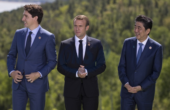 Justin Trudeau, Emmanuel Macron, Shinzo Abe
