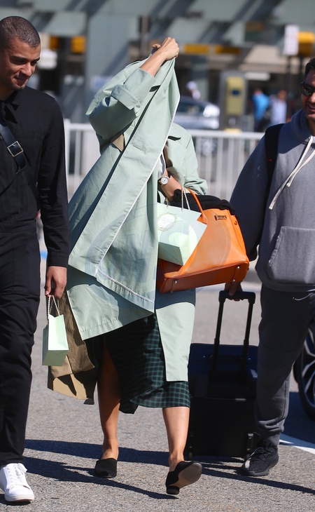 Irina Shayk w sukience w kratke i w dlugim plaszczu na lotnisku