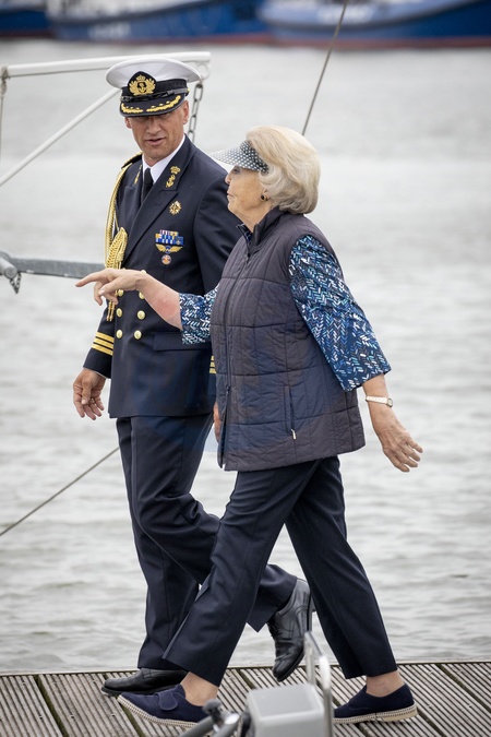 Ksiezna Beatrix w w daszku przeciwslonecznym na statku GreenDragon