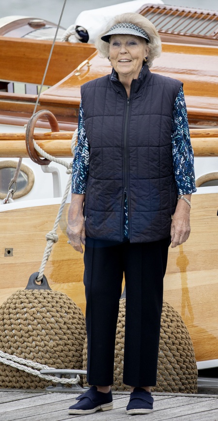 Ksiezna Beatrix w w daszku przeciwslonecznym na statku GreenDragon