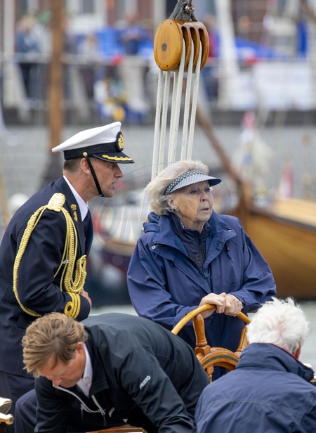 Ksiezna Beatrix w w daszku przeciwslonecznym na statku GreenDragon