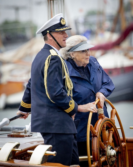 Ksiezna Beatrix w w daszku przeciwslonecznym na statku GreenDragon