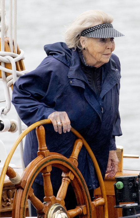 Ksiezna Beatrix w w daszku przeciwslonecznym na statku GreenDragon