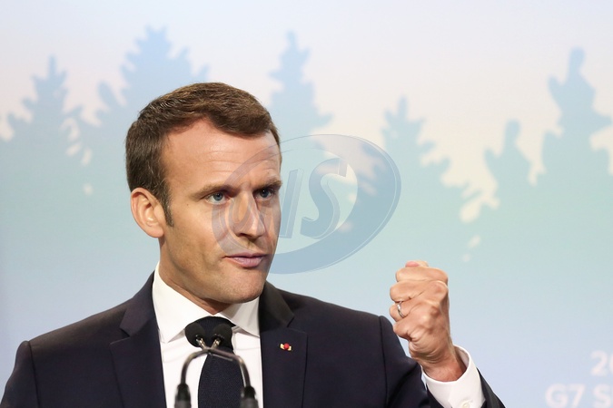 Emmanuel Macron na konferencji podczas G7