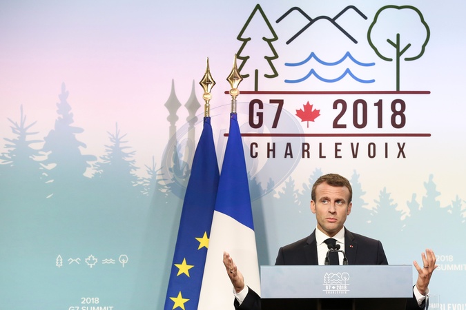 Emmanuel Macron na konferencji podczas G7
