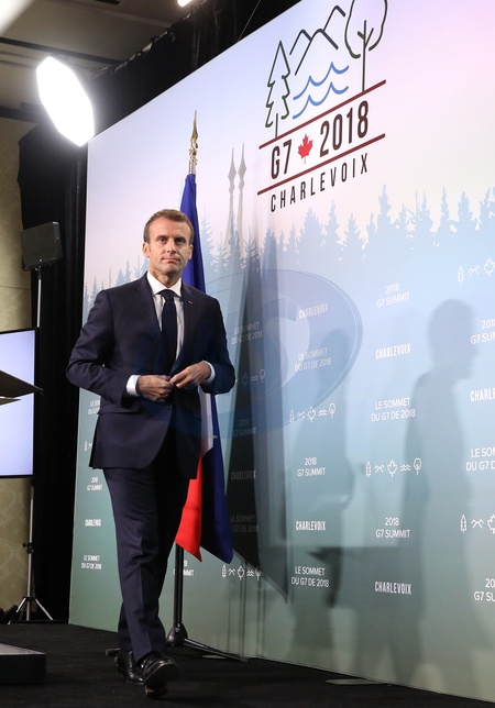 Emmanuel Macron na konferencji podczas G7