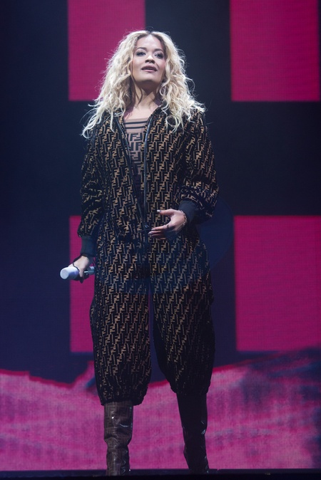 Rita Ora w kombinezonie marki Fendi na scenie