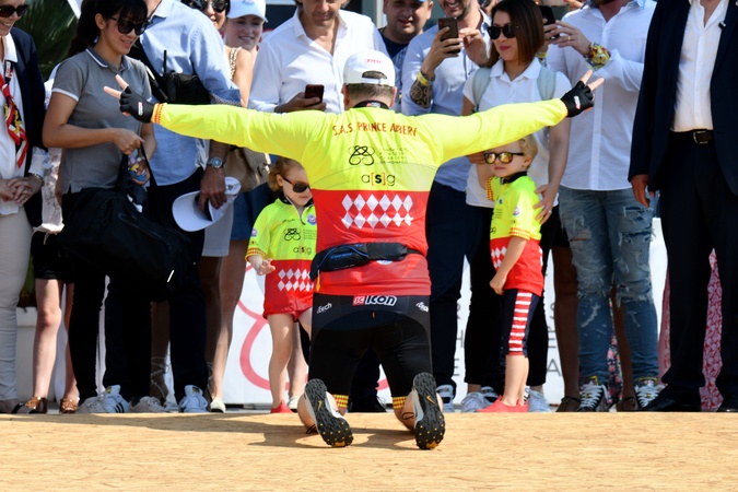 Charlene z mezem i z dziecmi na Water Bike Challenge