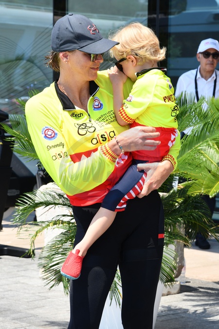 Charlene z mezem i z dziecmi na Water Bike Challenge