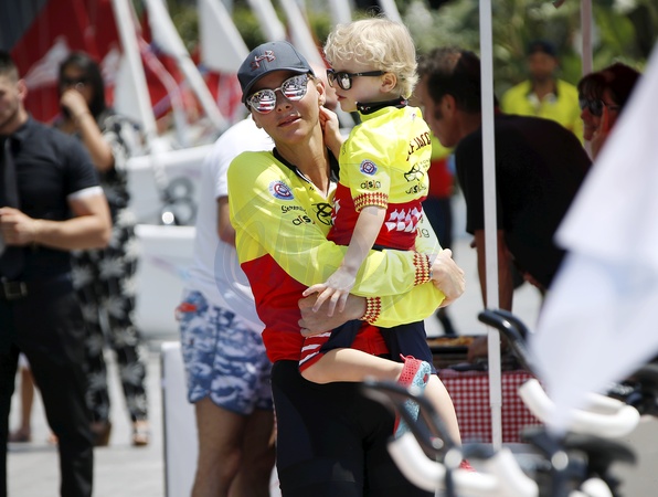 Charlene z mezem i z dziecmi na Water Bike Challenge