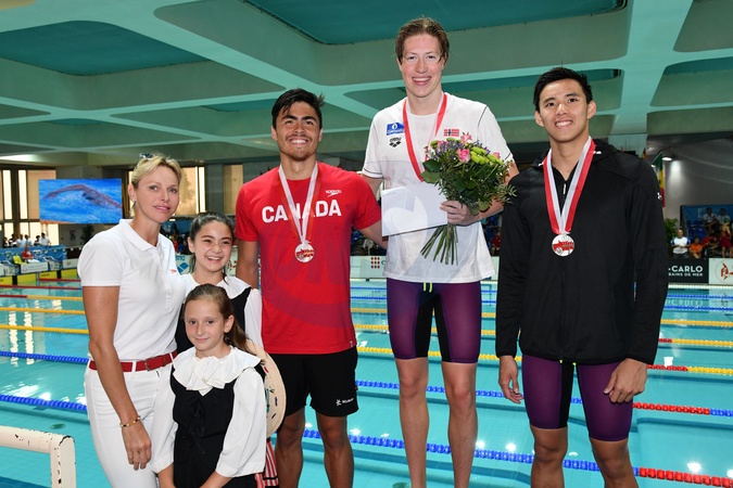 Ksiezna Charlene i ksiaze Albert na zawodach plywackich