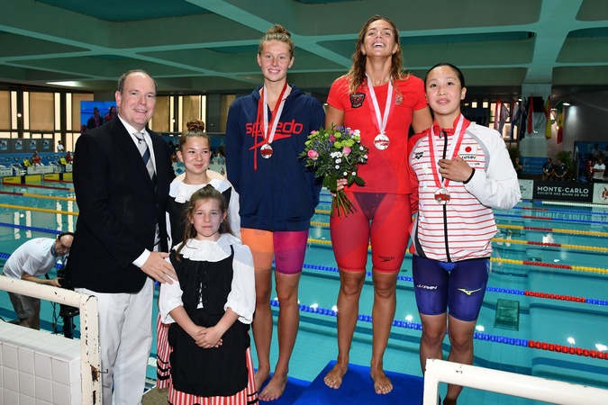 Ksiezna Charlene i ksiaze Albert na zawodach plywackich