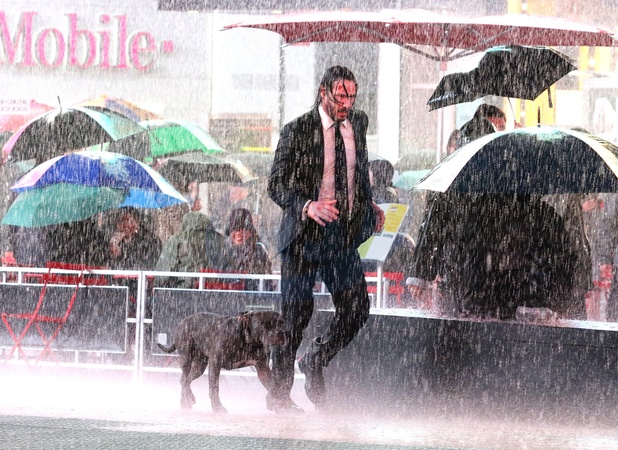 Keanu Reeves moknie podczas ulewy