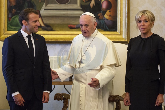 Emmanuel Macron, Brigitte Macron, Papiez Franciszek 03.jpg