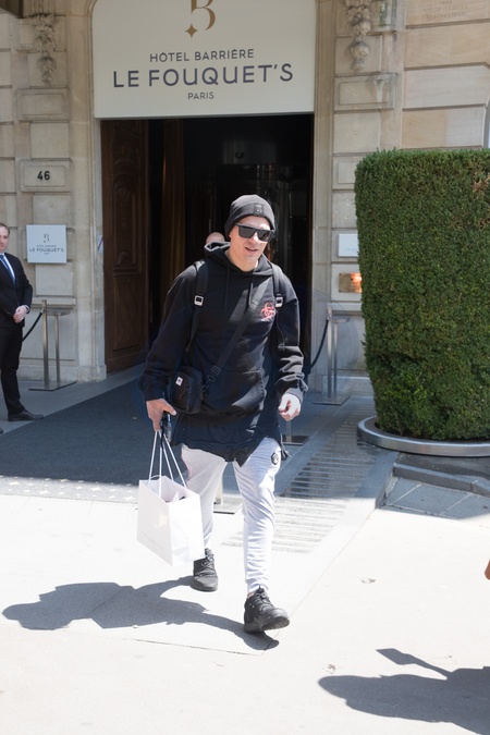 Paris Hilton i Chris Zylka wychodza z hotelu w Paryzu