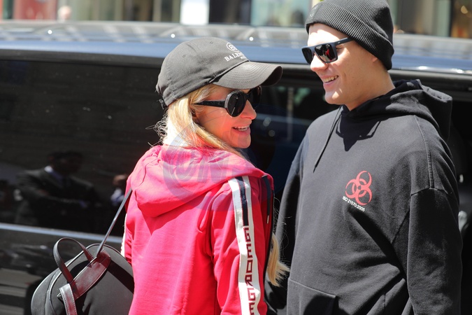 Paris Hilton i Chris Zylka wychodza z hotelu w Paryzu