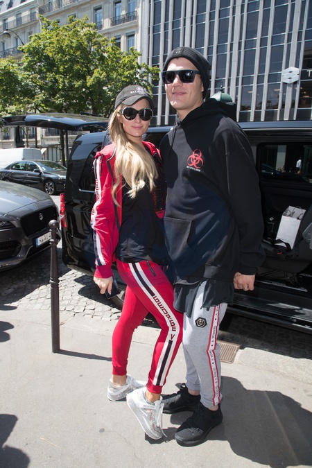 Paris Hilton i Chris Zylka wychodza z hotelu w Paryzu