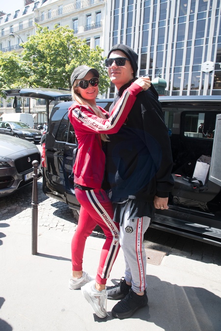 Paris Hilton i Chris Zylka wychodza z hotelu w Paryzu