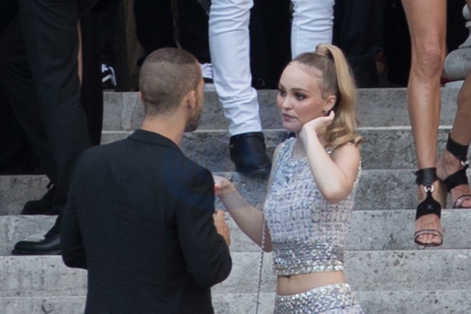 Lily-Rose Depp z papierosem plotkuje z przyjacielem na party Vogue