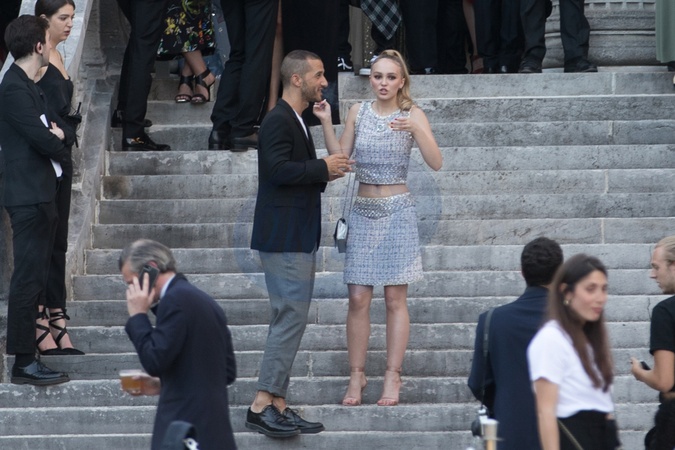 Lily-Rose Depp z papierosem plotkuje z przyjacielem na party Vogue