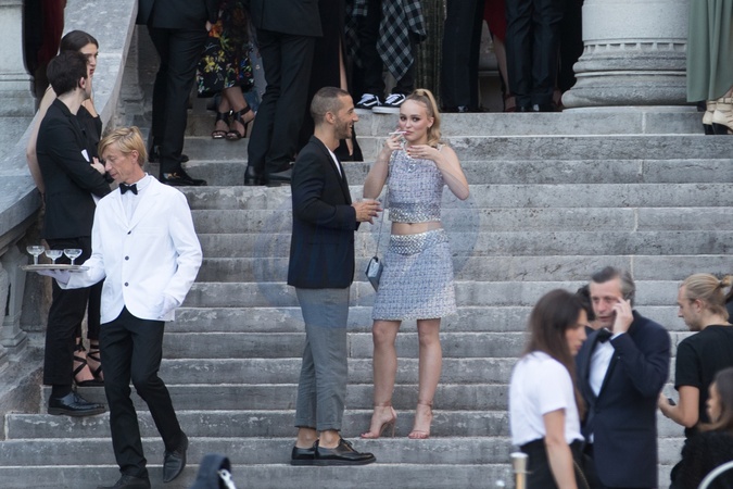 Lily-Rose Depp z papierosem plotkuje z przyjacielem na party Vogue