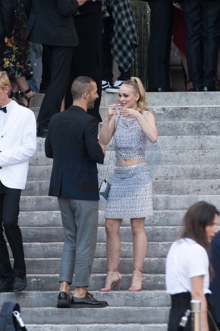 Lily-Rose Depp z papierosem plotkuje z przyjacielem na party Vogue