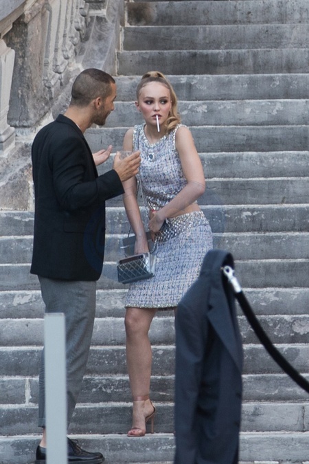 Lily-Rose Depp z papierosem plotkuje z przyjacielem na party Vogue