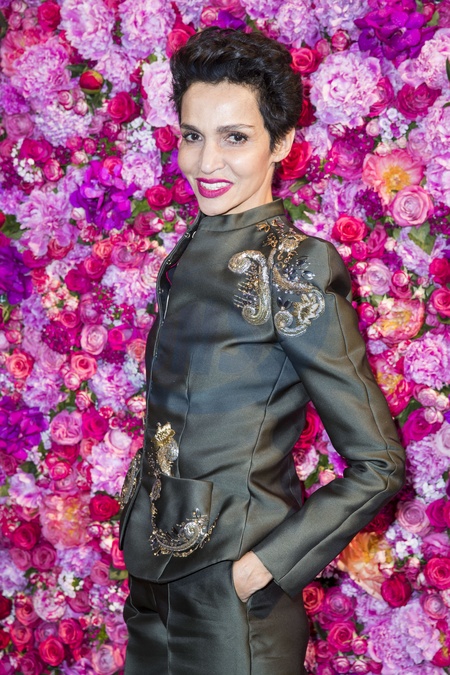 Celebrytki pozuja na pokazi Schiaparelli Haute-Couture