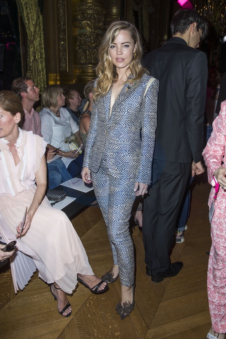 Celebrytki pozuja na pokazi Schiaparelli Haute-Couture