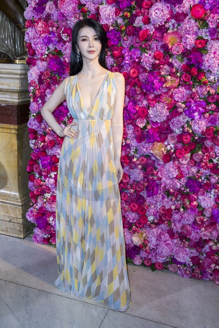 Celebrytki pozuja na pokazi Schiaparelli Haute-Couture