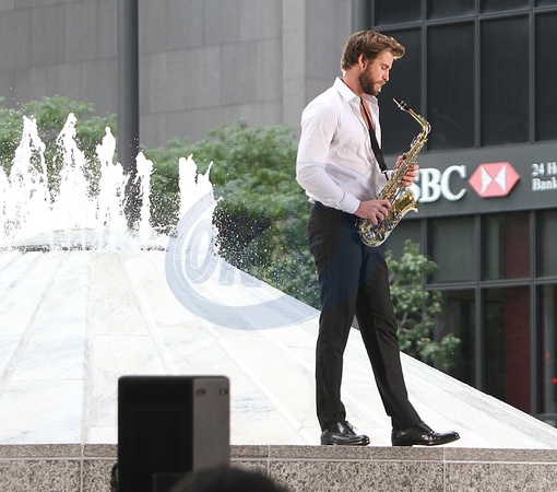 Liam Hemsworth z saksofonem na planie Isn't It Romantic