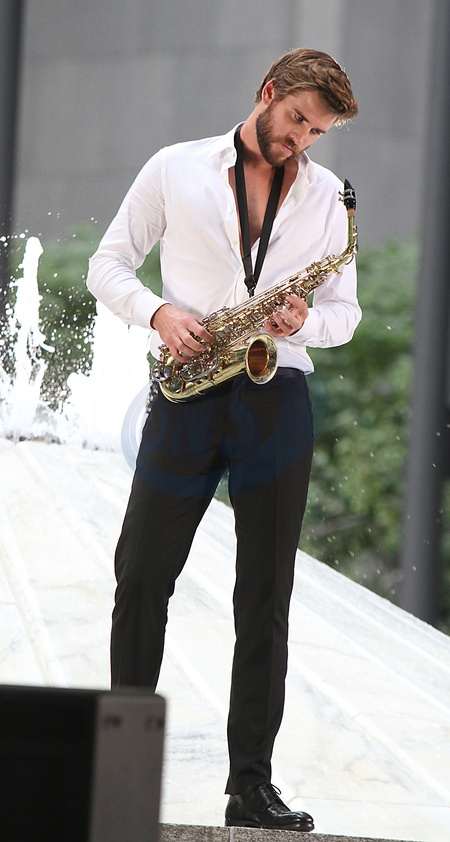 Liam Hemsworth z saksofonem na planie Isn't It Romantic
