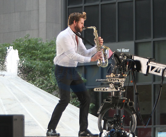 Liam Hemsworth z saksofonem na planie Isn't It Romantic