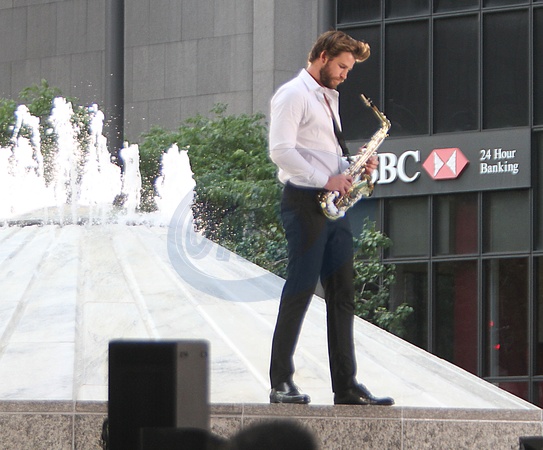 Liam Hemsworth z saksofonem na planie Isn't It Romantic