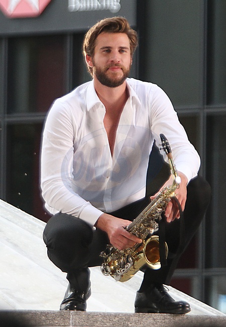Liam Hemsworth z saksofonem na planie Isn't It Romantic