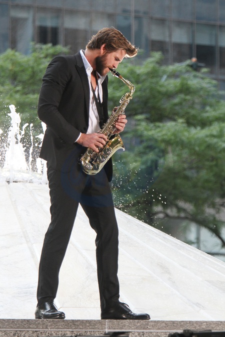 Liam Hemsworth z saksofonem na planie Isn't It Romantic