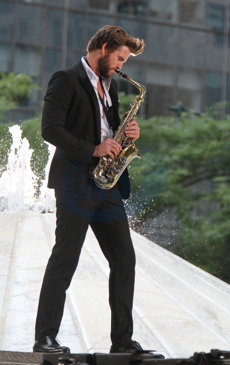 Liam Hemsworth z saksofonem na planie Isn't It Romantic