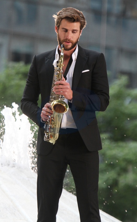 Liam Hemsworth z saksofonem na planie Isn't It Romantic