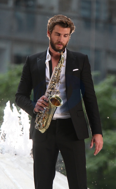 Liam Hemsworth z saksofonem na planie Isn't It Romantic