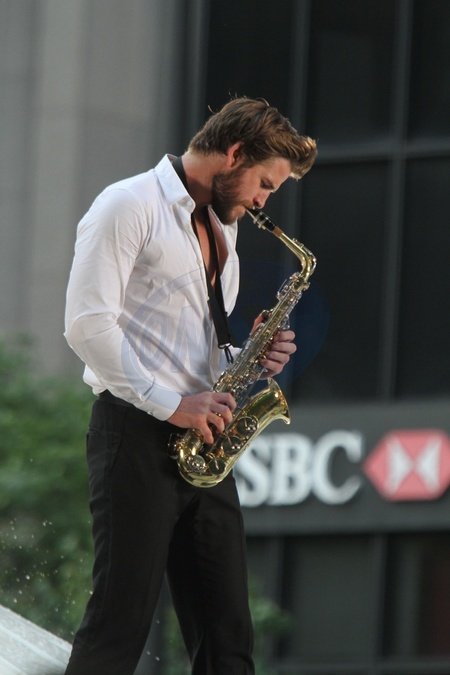 Liam Hemsworth z saksofonem na planie Isn't It Romantic