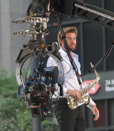 Liam Hemsworth z saksofonem na planie Isn't It Romantic