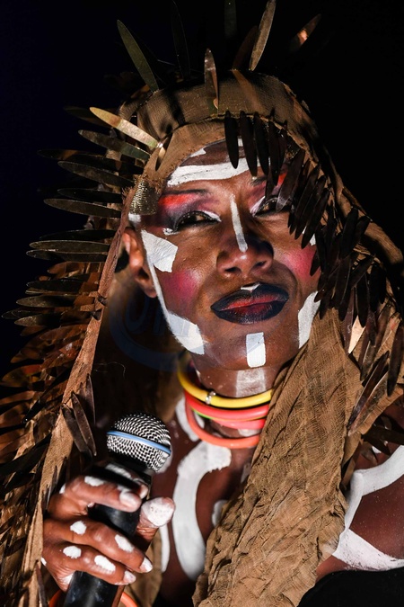 Grace Jones w zlotej masce - czaszce