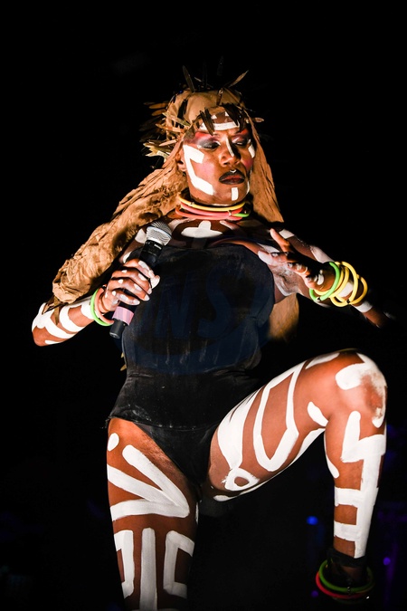 Grace Jones w zlotej masce - czaszce