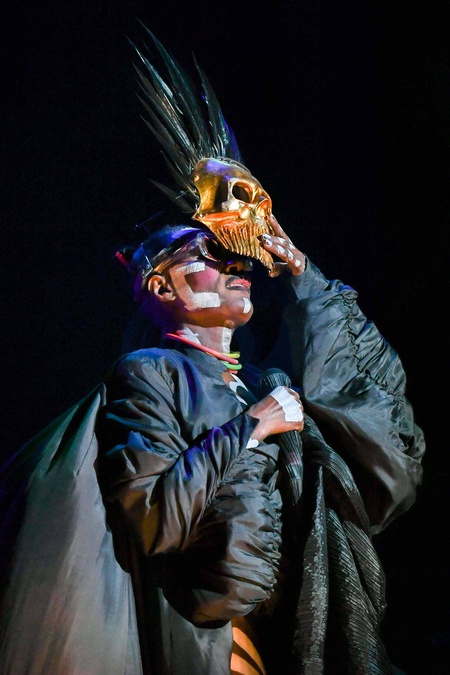 Grace Jones w zlotej masce - czaszce
