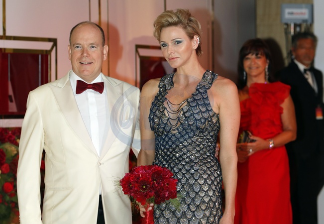 Ksiaze Albert z zona Charlene na gali Monegasque Red Cross Gala
