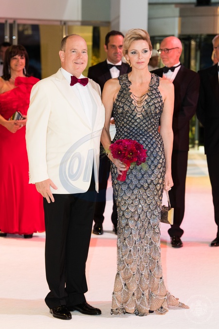 Ksiaze Albert z zona Charlene na gali Monegasque Red Cross Gala