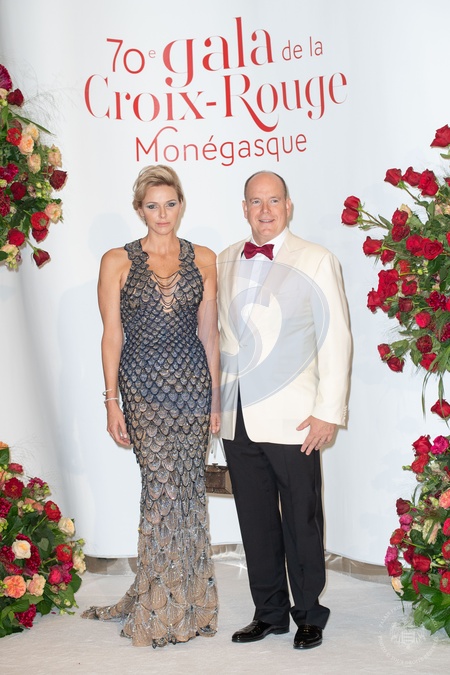 Ksiaze Albert z zona Charlene na gali Monegasque Red Cross Gala
