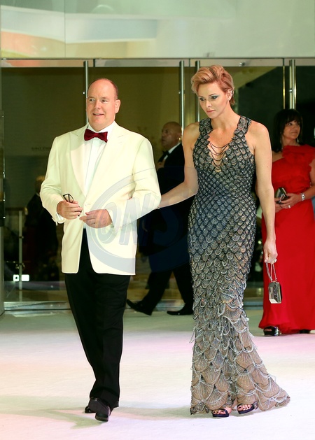 Ksiaze Albert z zona Charlene na gali Monegasque Red Cross Gala