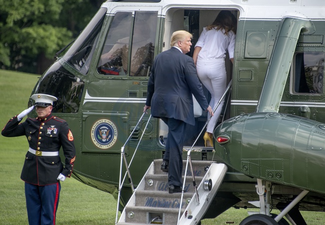 Melania i Donald Trump w drodze do helikoptera