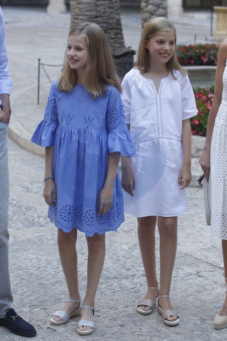 Krolowa Letizia i krol Filip z corkami pozuja do zdjec